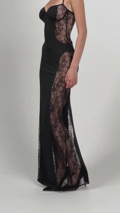 ASHLEY Black Lace Cut-Out Maxi Dress