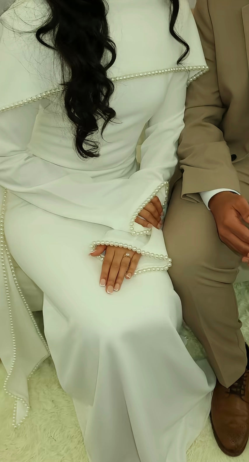 "I wore this dress for my nikkah and honestly I cried when I tried it on. It fits so beautifully. Delivery took a week. For the quality you get… this is a STEAL. Take your regular size unless you prefer more room."